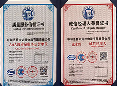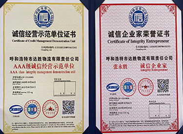 2007年榮獲內蒙古物流行業(yè)誠信企業(yè)